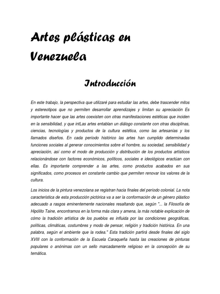 Sep 10, 2020 · la organización de las naciones unidas para la educación, la ciencia y la cultura (unesco), ha declarado nueve (9) patrimonios de la humanidad de venezuela... Efland (2005) completa esta idea afirmando que apreciar el arte como legado cultural e incluir la actividad artística en el currículo escolar forman parte del contexto de las prácticas educativas que cumplen con los objetivos señalados por la unesco para el nuevo milenio, pues proporcionan un espacio para la imaginación en el sistema. En las artes plásticas, también se muestra la gran influencia del arte griego, con un leve cambio hacia la búsqueda del realismo, más que del idealismo. Sep 10, 2020 · la organización de las naciones unidas para la educación, la ciencia y la cultura (unesco), ha declarado nueve (9) patrimonios de la humanidad de venezuela. May 21, 2014 · hay diversos tipos de manifestaciones culturales, entre las que se puede encontrar: Dentro de las cuales se encuentran, desde las artes escénicas, o inclusive las artes plásticas. La literatura (teatro, narrativa, poesía), la música, el cine, la danza y, por supuesto, las artes plásticas... Tal como se puede observar, en lo que son las pinturas de tipo rupestres.